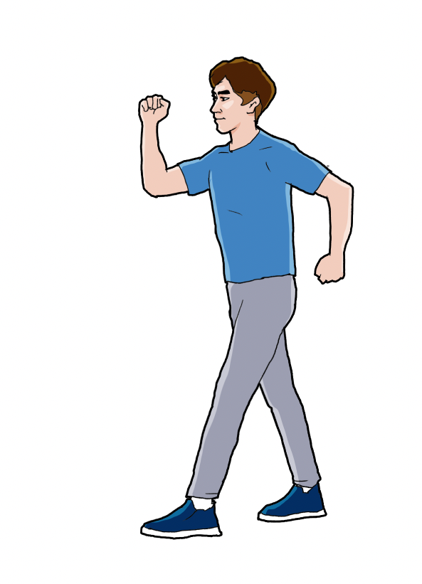 ➂ 손은 주먹을 가볍게 쥐고 가슴 높이와 골반 위를 오가도록 번갈아 움직인다.