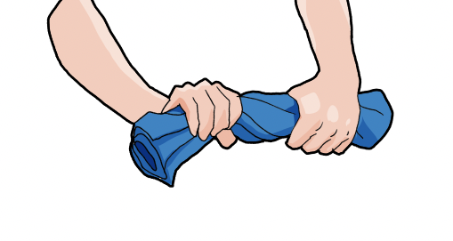 ➀ 마른 수건을 양손으로 잡은 뒤 수건을 짜듯이 천천히 비튼다.