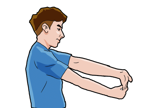 ➁ 손바닥을 위로 향하게 한 뒤 손끝을 아래로 꺾는다.