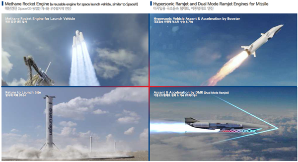 방산과 항공우주 분야 신사업 연구과제는 공시상으로는 별도로 명기돼 있지 않다. 다만 △수출형 K2 전차 △차기 전차 개발 △메탄 로켓 엔진 △극초음속 비행체 부스터 △이중모드 램제트 점화 등을 추진하는 것을 감안하면 상당한 연구개발비가 투입되고 있을 것으로 추측된다.