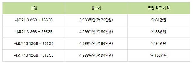 글로벌롬 탑재 제품은 라이선스나 유통 구조 때문에 중국 내수용에 비해 30만 원 이상 비싼 가격에 판매된다. 중국 내수용 역시도 그리 저렴한 가격은 아니지만 샤오미 13을 구매해야만 한다면 중국 내수용 기기를 구매하고 부트로더 언락 후 글로벌롬을 설치하는 것이 낫다.