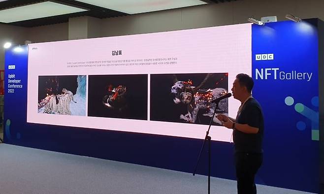 이날 UDC에서는 레이어2, 스마트 컨트랙트, 웹3.0, 보안, 탈중앙화 자율조직(DAO) 등에 대한 강연·패널토론이 이어졌다. 5층 로비에 마련된 NFT 갤러리에선 만능 크리에이터 구준엽 작가, '펭수'를 제작한 EBS 한결 감독, 파인아트계의 대가 김남표 작가 등의 NFT 작품을 전시했다.