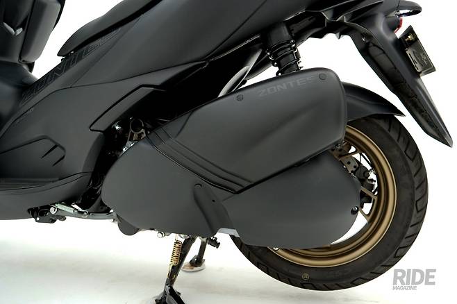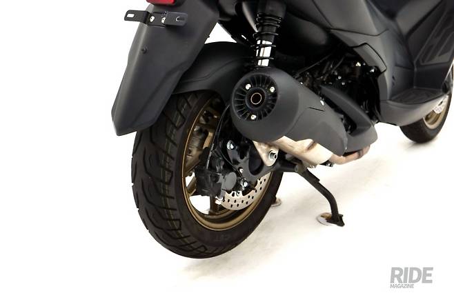 브레이크는 앞뒤 모두 디스크 방식으로 제동력이 우수해 규정 속도 이내라면 원하는 지점에 멈춰 세우는 것이 어렵지 않은 수준이다. 여기에 앞뒤 2채널 ABS가 더해져 안정성을 더하는데, 앞보다는 뒤가 ABS 개입이 조금 더 빠른 편이다. 경사로 주정차 시 차량이 미끄러져 내려가지 않도록 뒷브레이크 레버 상단에 작은 레버를 더해 주차 브레이크로 활용할 수 있는 아이디어도 더해졌다. 그리고 뒷바퀴가 미끄러지는 경우 구동력을 일시적으로 차단해 타이어 그립을 회복시키는 트랙션 컨트롤 기능도 갖춰져 있다.