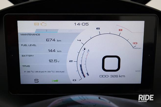 시트는 높이 760mm로 평균적인 수준이며, 앞뒤를 단차로 구분해 넉넉한 탑승공간을 확보하는 동시에 운전자의 엉덩이를 받쳐줘 장시간 주행에서도 피로를 덜어준다. 윈드스크린은 조절식이 탑재됐는데, 전동으로 조절하는 방식이어서 편리하지만 높이 조절은 딱 2단계만 있다. 조금 높이가 높아 디자인에서 아쉽긴 한데, 모든 요소를 디자인 위주로 설계하면 편의성이 떨어질 수밖에 없다보니 이 정도는 감내해야 하는 부분이라 생각한다.