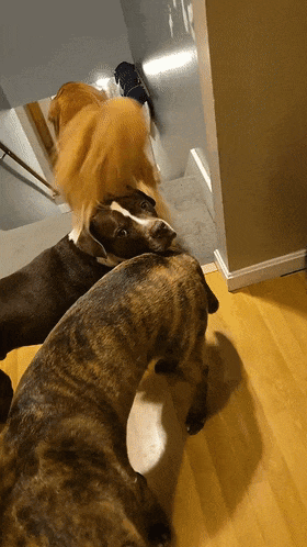 물론, 큰 강아지들이 작은 강아지를 정말로 무서워하는 것이 아니라, 너무 온순하고 예의 바른 것이겠지요?