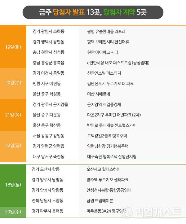 이밖에 대우건설이 대구 달서구 상인동에 지은 ‘상인푸르지오 센터파크’, 쌍용건설이 경기 평택시 통복동에 짓는 ‘더 플래티넘 스카이헤론’ 모델하우스를 오픈할 계획입니다.
