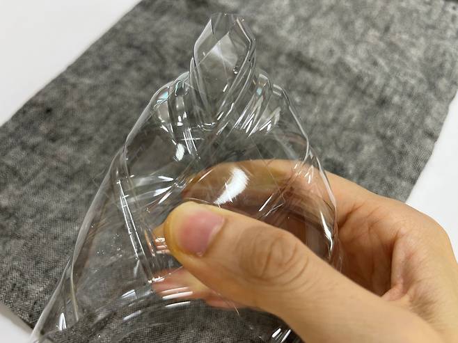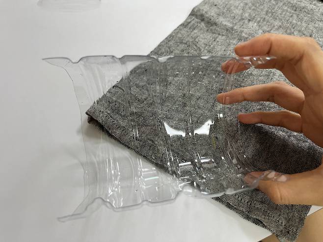 자른 페트병 조각을 위 사진과 같은 모양으로 접습니다. 양 귀퉁이를 가운데로 모아서 뾰족하게 뿔 모양을 만들고 테이프로 고정시킵니다.