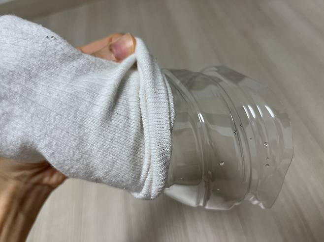 생수병과 양말만 있으면 창틀 청소 하나도 어렵지 않습니다. 특히나 페트병으로 고깔 모양을 만들어 놓기만 하면 언제든 활용할 수 있습니다.
