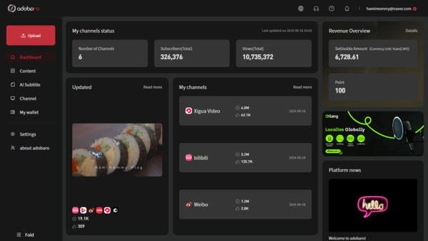 특히 소규모 크리에이터도 쉽게 활용할 수 있도록 SaaS 형태로 제작된 ‘아도바로’ 솔루션은 중국 내 플랫폼에 자동 배포가 가능하며, 크리에이터는 별도의 인증이나 브로커 없이 콘텐츠를 업로드할 수 있다. 더 나아가 아도바는 크리에이터가 ‘콘텐츠’라는 본질에 집중할 수 있도록 콘텐츠 제작 이후의 모든 과정을 AI 기반으로 자동화하는 ‘에그 프로젝트’를 개발하고 있다.