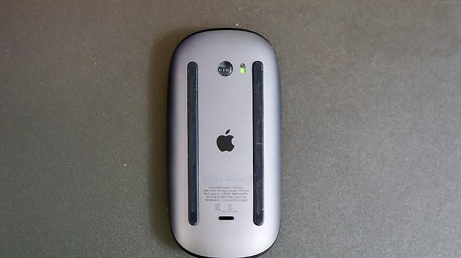 이건 정물 충격이었습니다. 매직마우스 충전 방식은 하단에 포트가 있어, 충전 중에는 마우스를 사용할 수 없습니다.