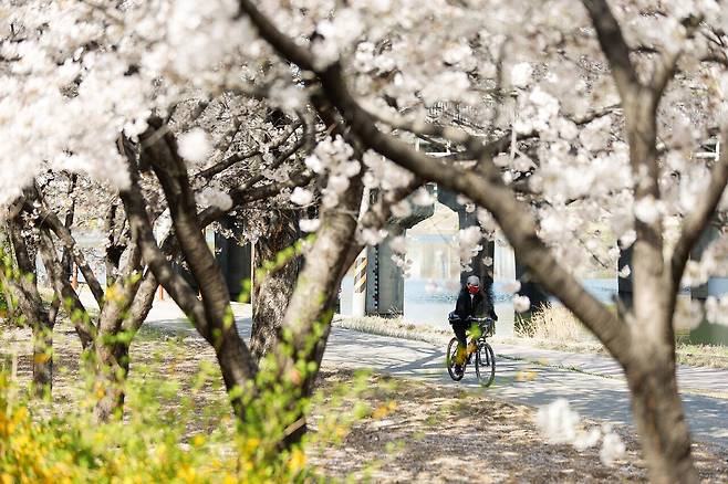 대구 시내 중심을 가로지르기 때문에 접근성이 좋고, 무엇보다 봄바람을 맞으며 벚꽃 터널 사이로 자전거를 탈 수 있다는 것이 장점입니다. 날씨도 풀렸으니 자전거 페달을 밟으며 벚꽃을 만끽해 보세요.