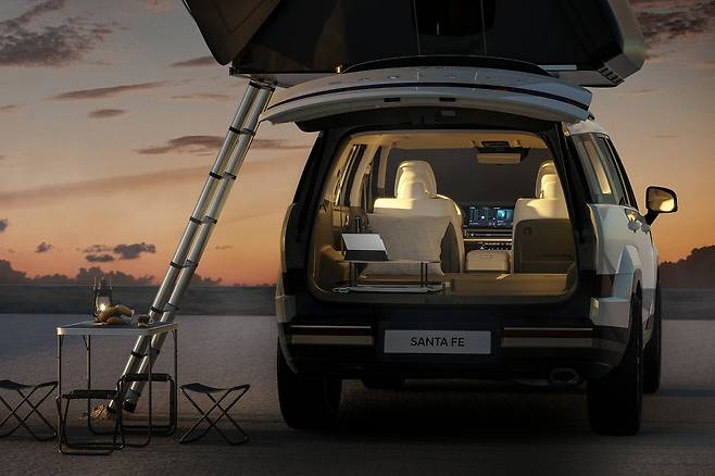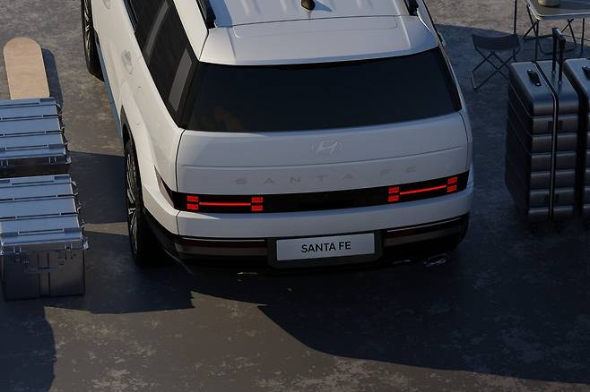 새로운 싼타페는 최근 글로벌 공개를 통해 박시한 디자인에 세련된 매력을 발산했다. ‘H’ 형태의 이중 픽셀 LED 헤드램프가 있는 H 테마 프런트 엔드는 특히 눈길을 사로잡는다.
