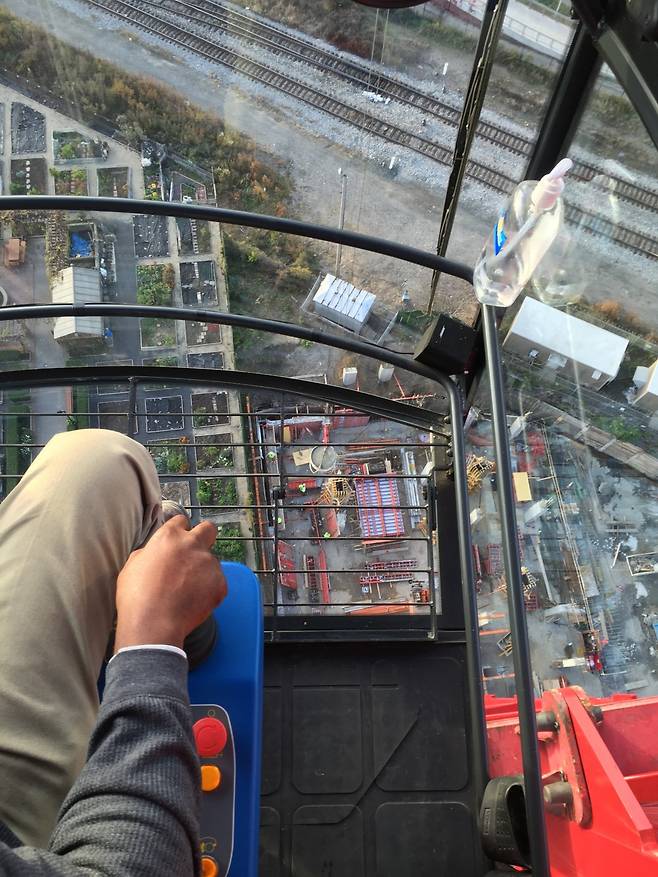 고소작업의 극한 환경: 타워크레인 조종석은 지상 100m 이상의 고층에 위치해 있다. 폭염·혹한·강풍에 직접 노출되며, 작업 도중에는 거의 크레인 아래로 내려가지 못한다. 화장실이 급해도 크레인에서 내려오기 어렵고, 도시락·생리현상까지 모두 그 자리에서 해결해야 한다.