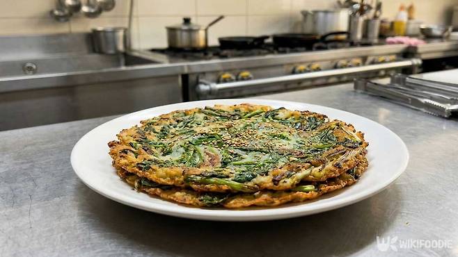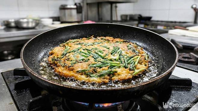 뒤집은 뒤에는 팬 가장자리로 기름을 조금 더 둘러 전 아래로 스며들게 한다. 불을 중약불로 낮추고 속까지 천천히 익힌다. 겉면이 노릇하게 익고 가장자리가 바삭해지면 완성이다. 구운 뒤에는 키친타월 위에 잠시 올려 여분의 기름을 빼고 바로 먹는다.