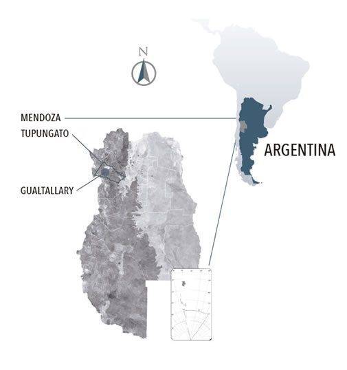 아르헨티나 와인산지는 최북단 살타(Salta)에서 시작해 남쪽으로 카타마르카(Catamarca), 라 리오하(La Rioja) , 산 후안(San Juan), 멘도자(Mendoza), 네우켄(Neuquen), 리오 네그로(Rio Negro)로 이어집니다. 그중 가장 유명한 산지는 멘도자로 전체 생산량의 75% 이상이 생산됩니다. 해발 고도가 높지만 평야지대가 많아 대규모로 와인 생산 가능하죠. 멘도자의 연중 강수량은 220mm이고 대륙성 기후의 영향을 받아 포도가 천천히 익어갑니다.