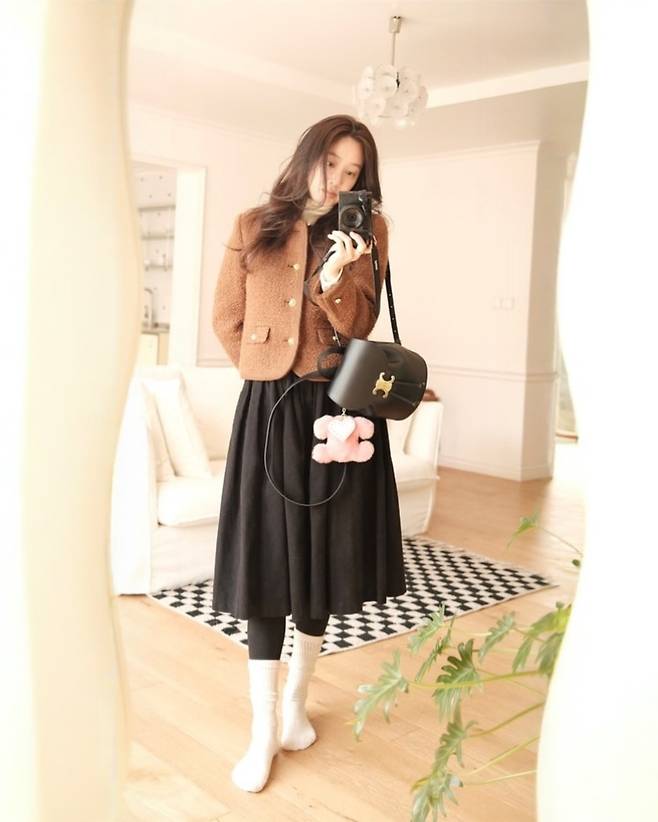 여기에 블랙 롱스커트와 함께 단정하면서도 세련된 분위기를 자아냈다.