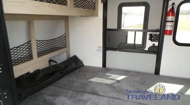 내부는 여타 티어드롭 캠핑카와 크게 다르지 않다. 양쪽 측면의 출입문을 통해 진입할 수 있으며, 내부는 두 개의 싱글 매트리스, 발치와 머리맡의 수납공간으로 구성됐다. 사실상 일부 수납공간이 머리맡 헤드보드 역할을 한다. 짐을 고정하기 위한 그물망도 있으며, 에어컨 및 히터 통풍구, 조명도 확인할 수 있다.