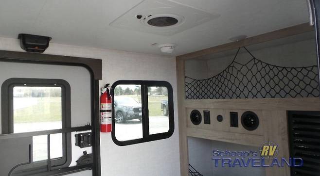 내부는 여타 티어드롭 캠핑카와 크게 다르지 않다. 양쪽 측면의 출입문을 통해 진입할 수 있으며, 내부는 두 개의 싱글 매트리스, 발치와 머리맡의 수납공간으로 구성됐다. 사실상 일부 수납공간이 머리맡 헤드보드 역할을 한다. 짐을 고정하기 위한 그물망도 있으며, 에어컨 및 히터 통풍구, 조명도 확인할 수 있다.