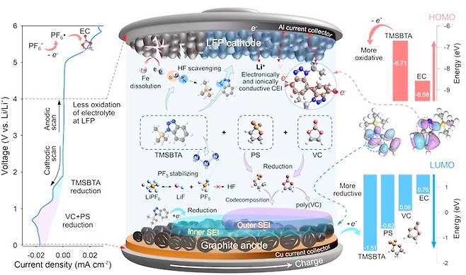 KAIST는 지난 16일 생명화학공학과 최남순 연구팀이 저비용 리튬인산철 양극과 흑연 음극을 사용하는 리튬이온 이차전지의 수명을 상온 및 고온에서 늘릴 수 있는 전해질 첨가제 기술을 개발했다고 발표했다.