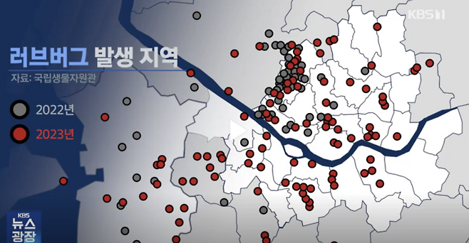 2022년 서울 은평구와 고양시 일대를 중심으로 처음 대량 출몰한 이후, 2023년 인천 전역, 2024년 남양주시와 계양산 일대를 거쳐 2025년에는 구리, 광명, 김포공항 인근까지 발견되고 있습니다.