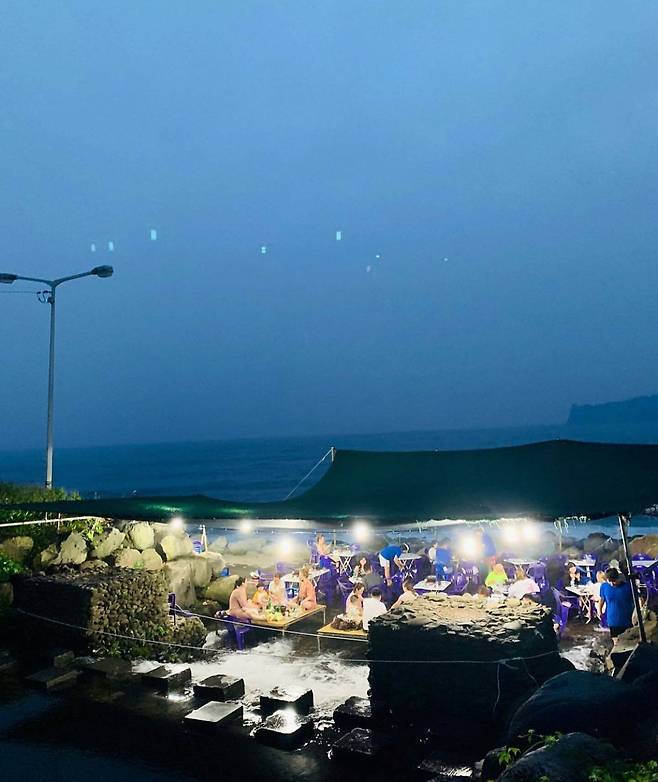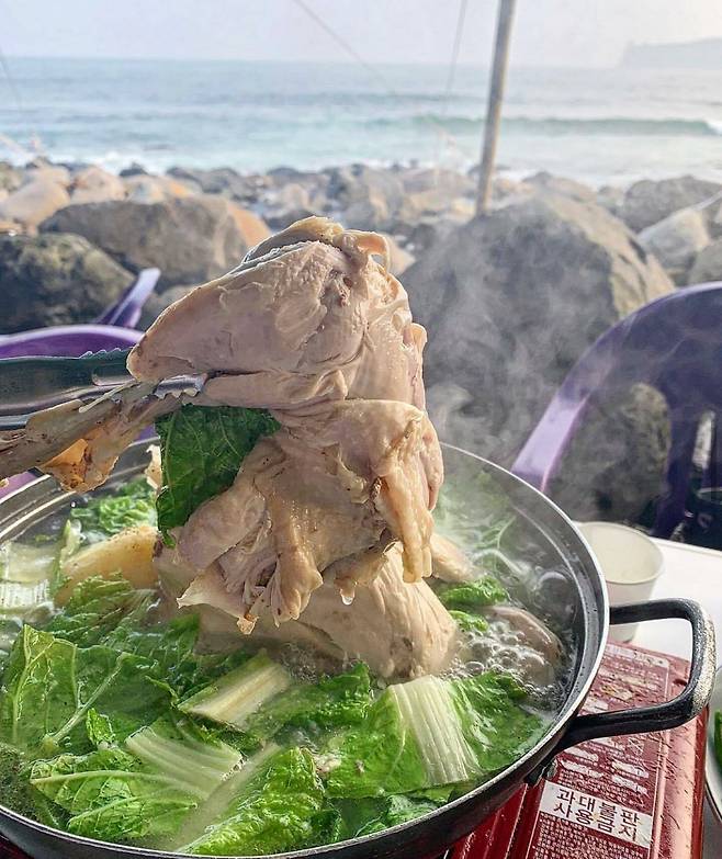 [식신 TIP] 간판도 없이 ‘속골 백숙’이라는 이름으로 여름에 한시적으로 운영되는 곳이에요. 시원한 제주 바다에 발을 퐁당 담그고 멀리 보이는 바다를 배경으로 인증샷을 남겨보세요.