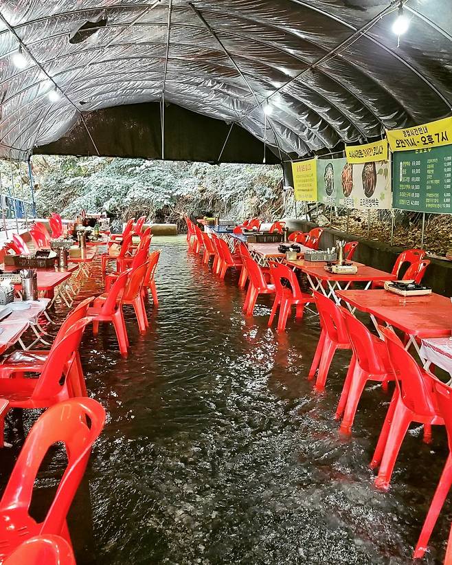 [식신 TIP] 바로 옆 계곡에서 물놀이까지 할 수 있는 곳이에요. 일반석도 함께 운영되고 있으니 계곡 자리에 앉거나 백숙을 주문할 경우 전화예약 후 방문하세요.