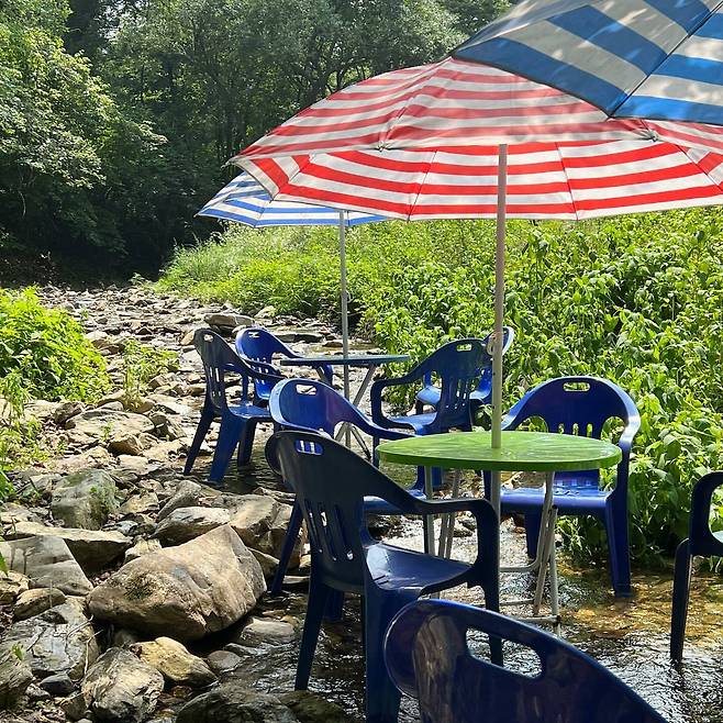 [식신 TIP] 바람 솔솔 부는 평상에서 물소리 들으며 진정한 신선놀음을 할 수 있어요. 백숙 드시려면 한 시간 반 전에 미리 예약하세요.