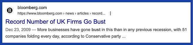 Bust는 고장내다, 부수다라는 뜻을 갖고 있어. 형용사로는 고장난이라는 뜻을 갖고 있지. 이런 의미가 확장되어 파산하다라는 의미도 갖게 된 거야!
