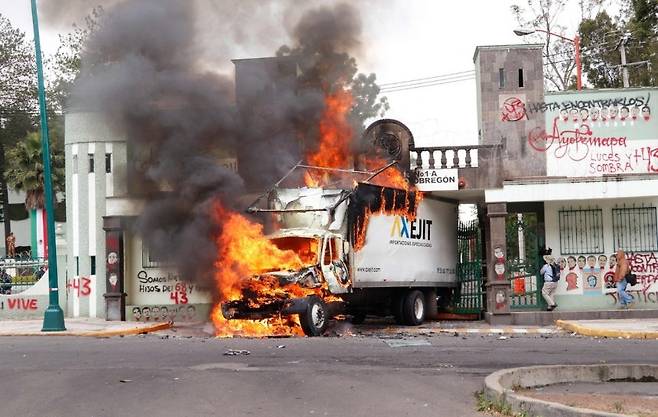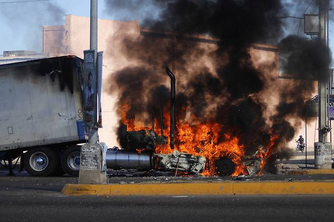 주유소가 불탔고, 약국이 불탔고, 버스가 불탔습니다. 20개 주에서 250곳 이상의 도로가 동시에 봉쇄됐습니다. '나르코블로케오스.' 카르텔이 차량을 도로 위에 세우고 불을 지르는 전술. 군대의 이동을 차단하고 도시 전체를 마비시키는 전형적인 카르텔의 전쟁 수법입니다.