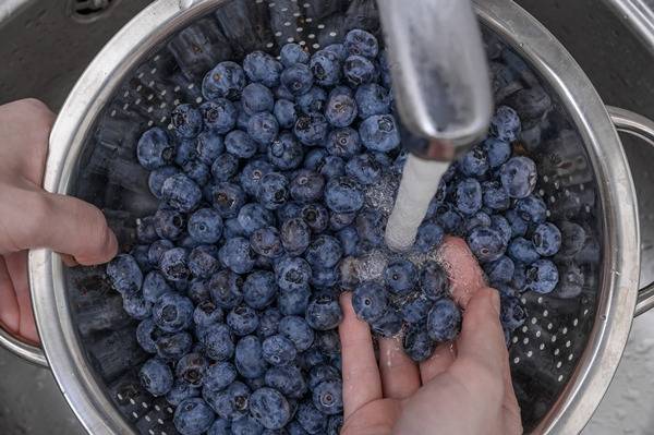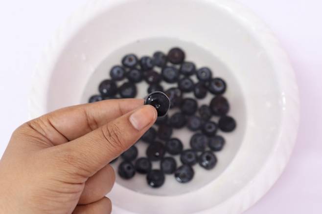 블루베리를 깨끗한 찬물에 빠르게 헹궈야 해요. 물에 잠시 담가두지 말고, 흐르는 물에 가볍게 헹구는 것이 좋은데요.