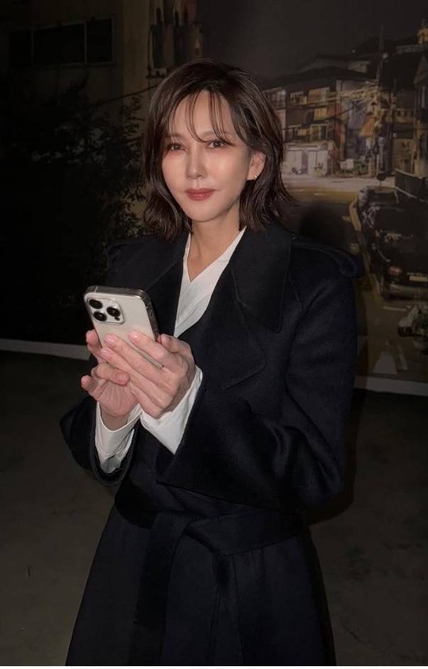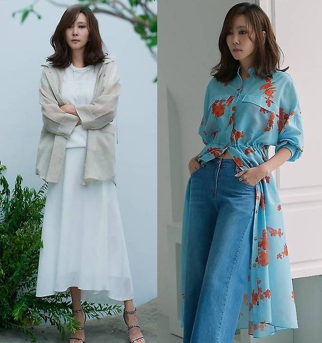 셔츠의 언밸런스한 길이감과 허리 라인을 강조한 연출은 김남주 특유의 세련된 이미지에 구조적인 멋을 더했습니다.