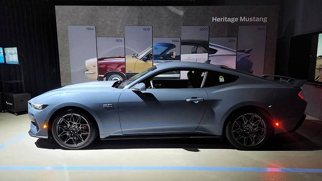 7세대 또한 그런 머스탱의 헤리티지를 답습하여 공개되었다. 롱 후드, 패스트백 스타일링의 디자인과 직렬 4기통 엔진에서 5.0 V8 자연흡기, 컨버터블 차량까지 다양한 베리에이션으로 한국 소비자들을 공략할 예정이다. 런칭 행사는 광명 AK플라자 아이벡스 스튜디오에서 진행되었다. 자유관람 존에는 총 네 대의 차량이 전시되어 있었다. 출시 차량인 머스탱 2.3 에코 부스트 쿠페, 머스탱 2.3 컨버터블, 머스탱 5.0 GT 쿠페로 구성된다. 그리고 메인 홀에는 더욱 특별한 머스탱 한 대가 전시되어 있었다. 바로 1세대 1964 머스탱 컨버터블이다.