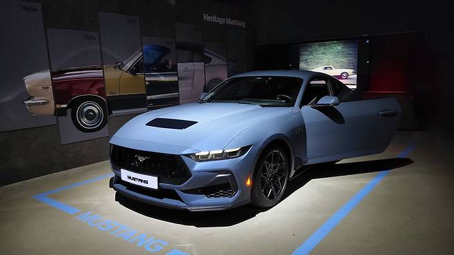 7세대 또한 그런 머스탱의 헤리티지를 답습하여 공개되었다. 롱 후드, 패스트백 스타일링의 디자인과 직렬 4기통 엔진에서 5.0 V8 자연흡기, 컨버터블 차량까지 다양한 베리에이션으로 한국 소비자들을 공략할 예정이다. 런칭 행사는 광명 AK플라자 아이벡스 스튜디오에서 진행되었다. 자유관람 존에는 총 네 대의 차량이 전시되어 있었다. 출시 차량인 머스탱 2.3 에코 부스트 쿠페, 머스탱 2.3 컨버터블, 머스탱 5.0 GT 쿠페로 구성된다. 그리고 메인 홀에는 더욱 특별한 머스탱 한 대가 전시되어 있었다. 바로 1세대 1964 머스탱 컨버터블이다.
