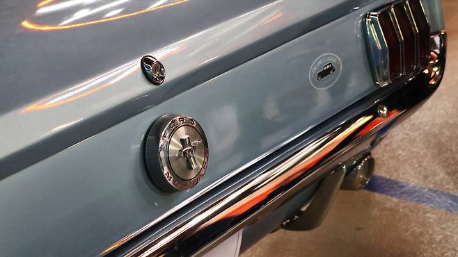 최신형 머스탱을 접하기 전 클래식 모델의 향수를 느껴보았다. 푸른빛의 차체 색감과 크롬 가니시들의 조화가 굉장히 화려하게 느껴진다. 원한다면 거대한 고배기량 엔진을 품을 수 있는 긴 보닛이 있고, 머스탱의 심볼로 장식되어 있는 전면 그릴이 대담한 인상을 남긴다. 후미등에 채택된 3분할 디자인은 현재까지도 연결되는 머스탱의 핵심 디자인 요소이다. 컨버터블 차량인 만큼 실내공간도 가까이서 살펴볼 수 있었다. 유독 그립이 얇아 보이는 스티어링 휠과 기어 노브가 독특했고, 인테리어의 각종 크롬색 장식물이 화려함을 자아낸다.