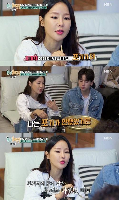 결혼 후 미나는 높은 나이에도 2세를 바라며 여러 차례 시험관 시술을 시도했지만 쉽지 않았다.