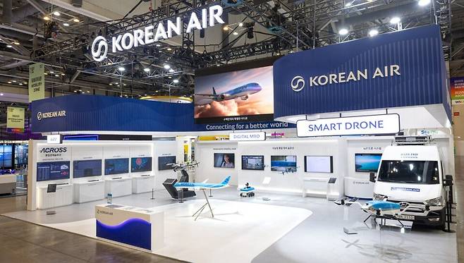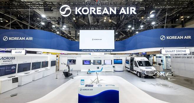 대한항공은 이번 전시에서 기업 가치 체계 'KE Way'를 중심으로 대한항공 항공우주사업의 우수한 역량과 스마트 모빌리티 관련 최신 기술을 소개한다. 부스에는 'Connecting for a better world(더 나은 세상을 위한 연결)'라는 기업의 존재 이유 아래, 대한항공의 기술이 적용된 미래항공모빌리티(AAM), 디지털 MRO, 스마트 드론 등 3개의 섹션으로 나눠 첨단 기술력을 선보인다.