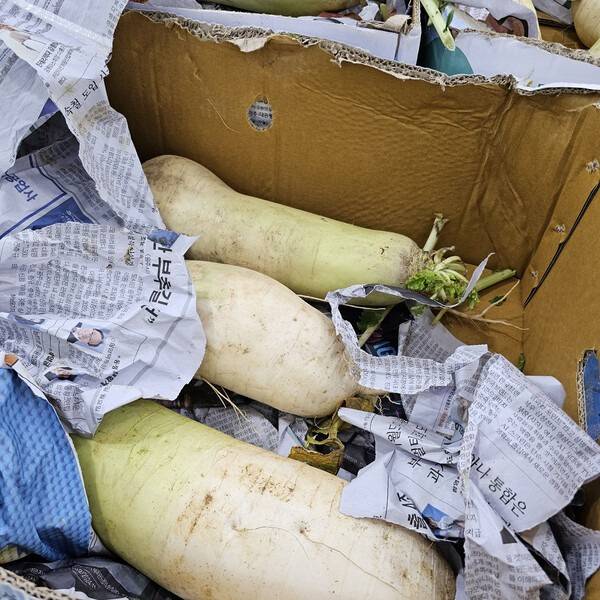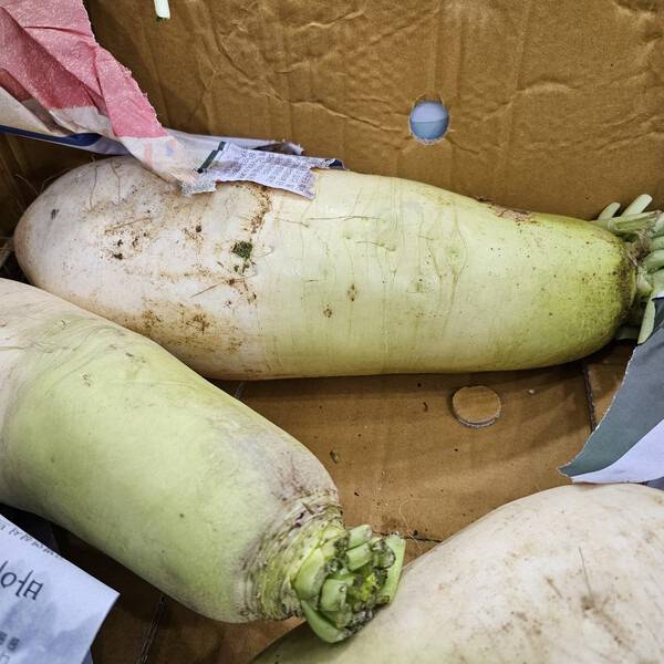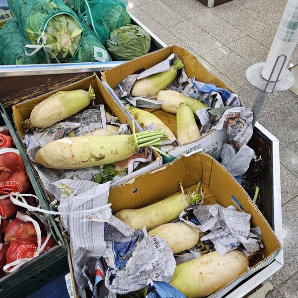 이런 무는 안쪽이 썩었을 가능성이 높습니다. 겉만 보고 고르면 집에 와서 후회하기 딱 좋습니다.