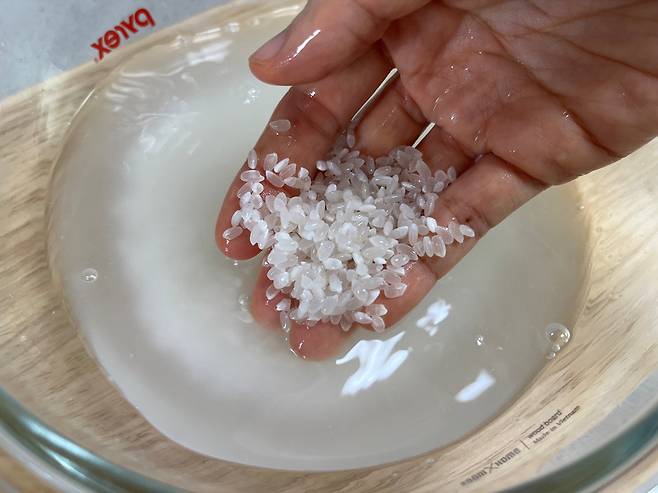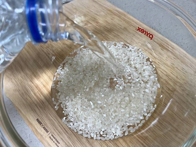 물을 먼저 넣는 것이 아니라, 반드시 쌀을 먼저 넣고 물을 부어야 합니다. 물을 먼저 받아 놓으면 쌀 속 먼지나 불순물이 물에 퍼지고 다시 쌀이 그 물을 흡수하게 됩니다.