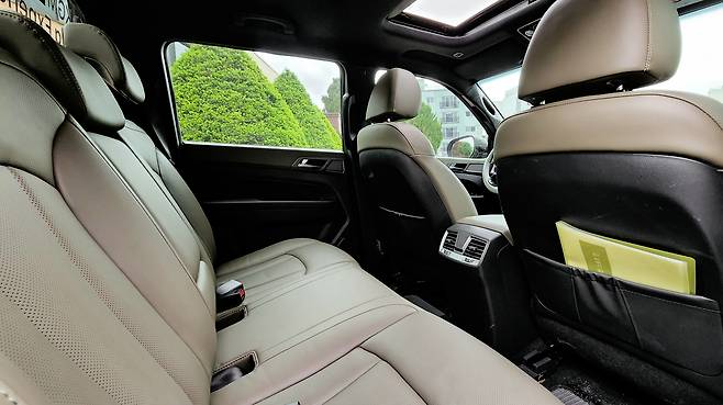 무게감을 지닌 스티어링 감각은 마음에 든다. 리어 오버행을 늘려서인지, 체급에 비해 생각보다 회전 반경도 짧았다. 대신 하체가 느슨하게 조율되어 있어서 스티어링을 예리하게 조작하긴 어렵다. 순간적으로 강한 횡가속도가 가해지면 그 타격에 크게 반응하는 편이다. 보통 세단을 타다가 바디온 프레임 SUV를 타면 쏠림 현상이 더 크게 체감 간다. 단, 이 역시도 적재하중을 고려했을 가능성이 높다. 시승 기간에는 많은 비가 내리기도 했는데, 후륜 접지력이 잘 확보되지 않아서 토크를 조금이라도 강하게 주면 바로 슬립으로 피드백을 주곤 했다.