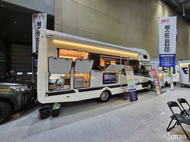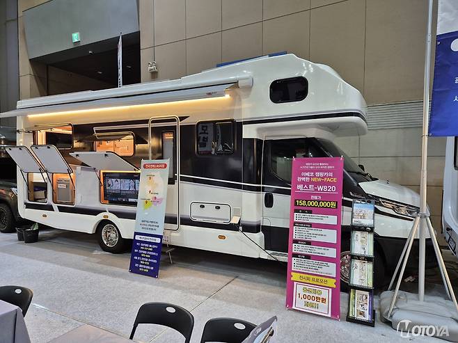 베스트알브이는 이베코 데일리를 기반으로 한 8.2m급의 대형 모터홈 W820을 선보였다. 베스트알브이의 플래그십 모델이기도 한 이 차종은 실내외로 '풀옵션'이 무엇인지를 보여주는 다양한 편의시설을 갖추고 있을 뿐만 아니라, 우수한 마감품질과 디자인도 돋보인다. 특히 이 모델은 전방과 후방 모두에 가변식의 거실을 배치함으로써 한층 여유롭고도 유연한 송간의 운용이 가능하다.