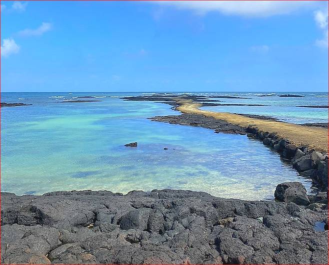 제주의 동쪽 해안 마을, 김녕에는 오직 간조 시간에만 모습을 드러내는 특별한 길이 있습니다. 마을 사람들은 이곳을 '떠오르길'이라 부르죠. 맑은 날, 초록빛 이끼가 덮인 바닷길이 물 위로 떠오르면 누구든 그 길 위를 걷고 싶어 집니다. 자연이 만든 듯하지만 사실 이곳은 제주 해녀들이 물질을 위해 만든 인공의 바닷길입니다. 그렇지만 풍경은 누구보다 순수한 자연의 일부처럼 느껴지죠. 갯벌과 바다가 갈라지며 생기는 길 위에서, 마치 바닷속을 걷는 듯한 체험이 가능합니다.