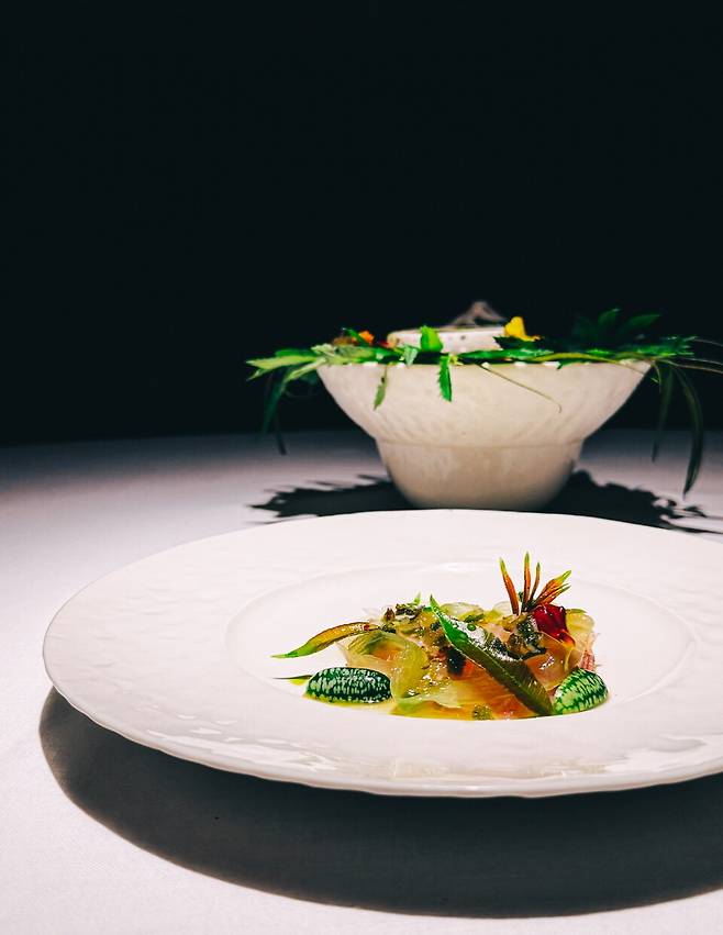 루마리는 '가에틴 에수즈(Gaetan Biesuz)' 셰프가 이끄는 퀴진이다. 프렌치 터치를 가미한 동남아시아 전역의 요리를 코스로 선보인다. 이곳의 핵심 가치는 80/20. 농산물의 80%는 인도네시아에서 공급하고, 나머지 20%는 필요에 의해 수입해 사용한다는 약속이다.