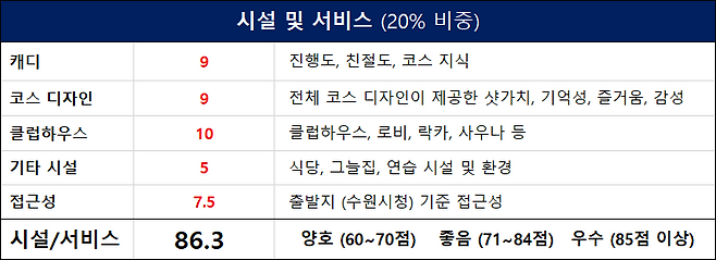 ▶ 캐디의 코스 설명, 운영 및 친절도 : 9 점