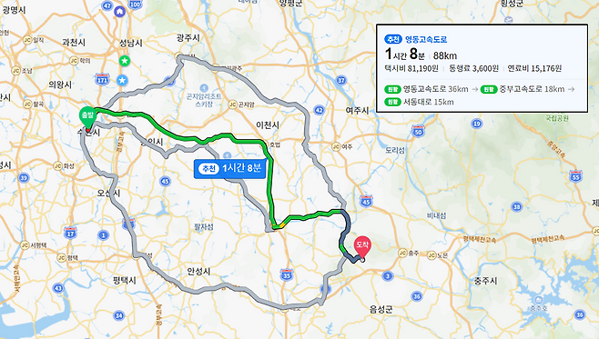 ▶ 이동 거리 / 접근성: 7.5 점 (수원시청역 >> 충북 레인보우힐스 CC)