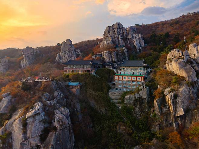 가을빛이 천천히 남해까지 스며드는 계절, 바다와 산이 함께 있는 특별한 풍경을 만나고 싶다면 남해 금산을 찾아가 보세요. 웅장한 기암괴석 사이로 난 능선을 따라 걸으며 붉게 물든 단풍과 푸른 바다가 어우러진 풍경을 감상하는 일은 그 자체로 깊은 감동을 선사합니다. 특히 보리암(해발 681m)에서 내려다보는 한려수도의 바다 풍경은 한국 단풍 여행지 중에서도 손꼽히는 장면으로 불리죠.