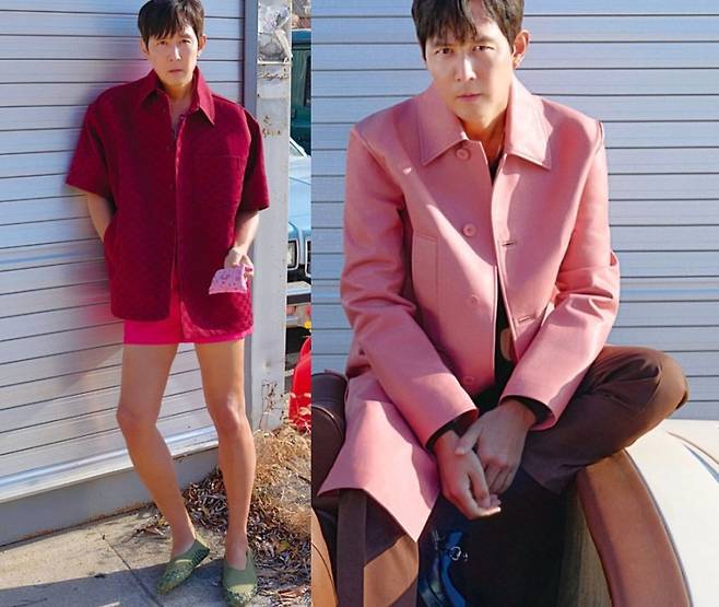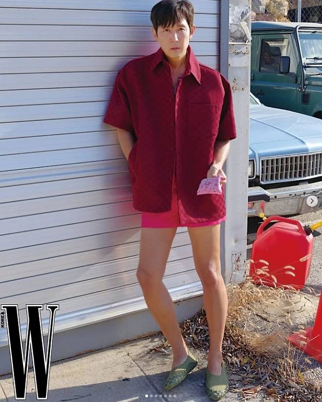 해당 화보에서 이정재는 그동안 보여주지 못한 하의 실종 패션을 선보였는데, 빨간 셔츠에 반바지를 입은 모습이 묘한 강렬함을 선보였다.
