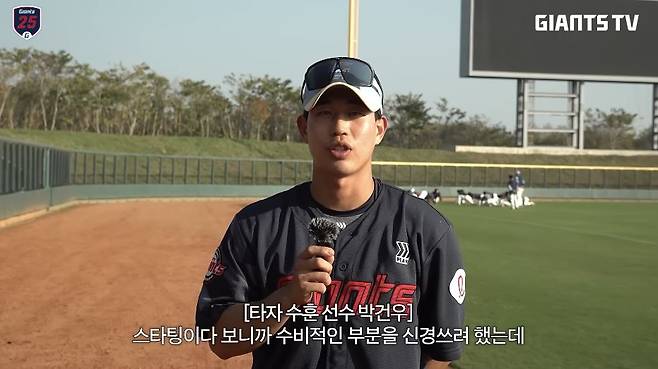 고려대를 졸업하고 2025 육성선수로 입단한 박건우는 이번 1군 스프링캠프 명단에 승선하는 뜻밖의 행운을 맞았다. 지난해 유강남과 손성빈이 수술을 받으면서 개막전 안방 복귀가 불투명한 가운데 다른 신인 포수인 박재엽과 함께 생각보다 빠르게 1군 캠프를 경험할 기회를 받았다.