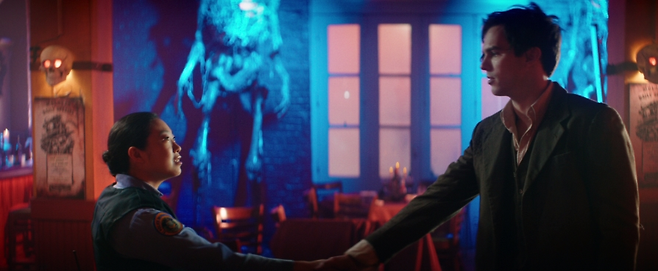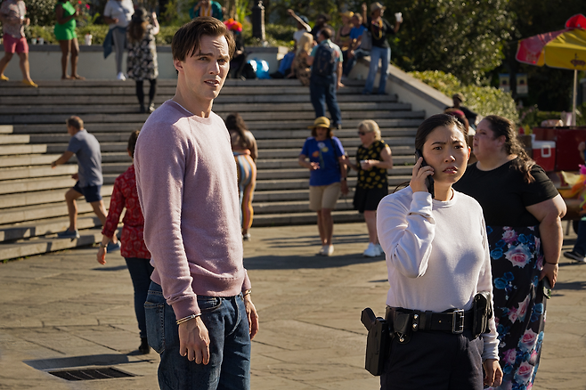 이 보통 아닌 인물에게도 팩폭을 날리며 절친이 되는 여자 경찰 레베카 역할에는 '오션스 8', '페어웰', '샹치와 텐 링즈의 전설' 등에서 특유의 연기력으로 관객들에게 웃음과 감동을 선사한 아콰피나가 맡았습니다.
