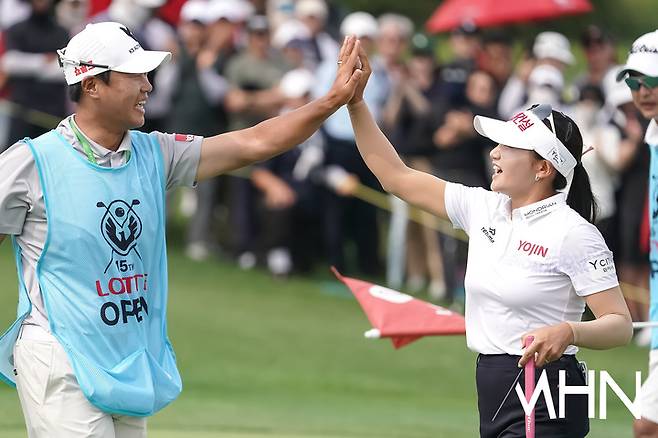 [mhn포토] 노승희, 8야드 이글 성공하며 하이파이브