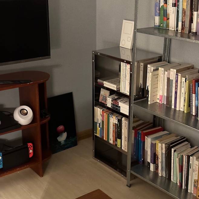 책 읽는 걸 즐기고, 좋아하는 작가의 책을 곁에 두는 걸 좋아하는 제게 빼곡한 책장은 마음의 안정을 줍니다. 원래 책장 한 개로 시작하여 벌써 세 개까지 늘어났는데요,